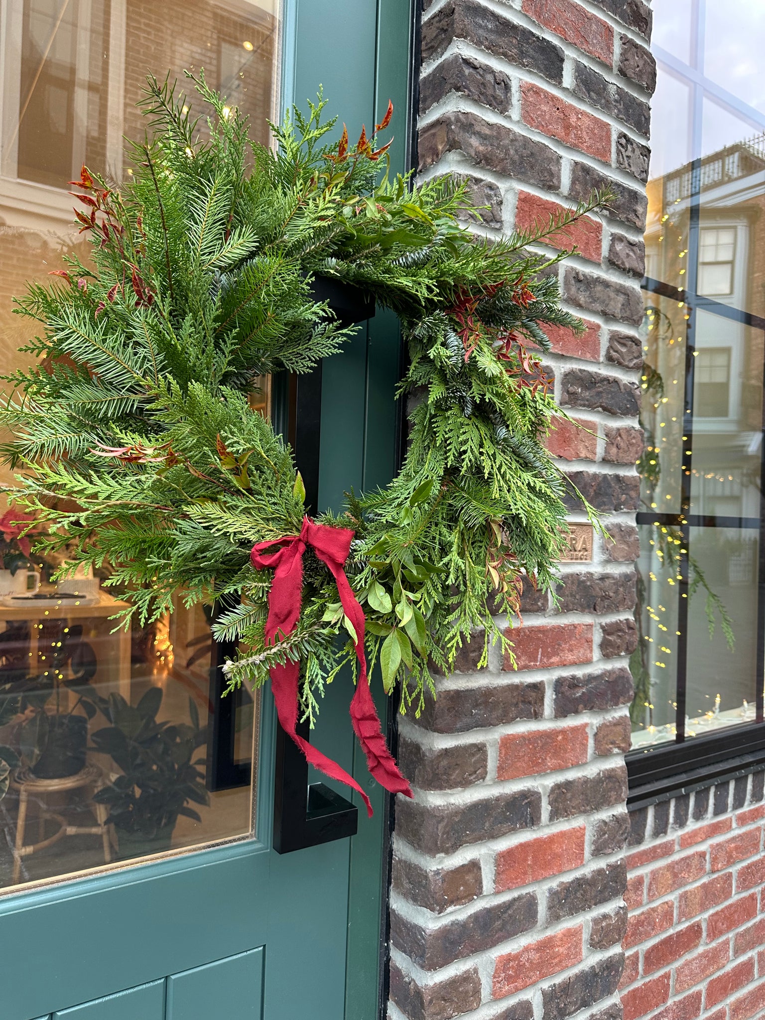 Sophia will demonstrate two techniques for wreath making and you can choose between a traditional wreath or a more modern, asymmetrical all made with fragrant evergreen wreath that will last all season long with your choice of colourful bow.